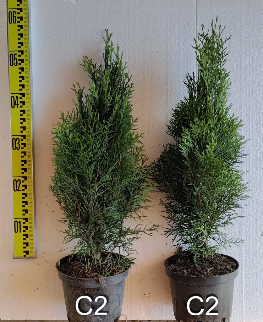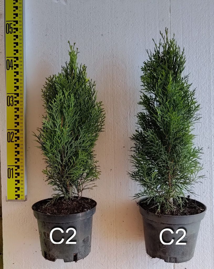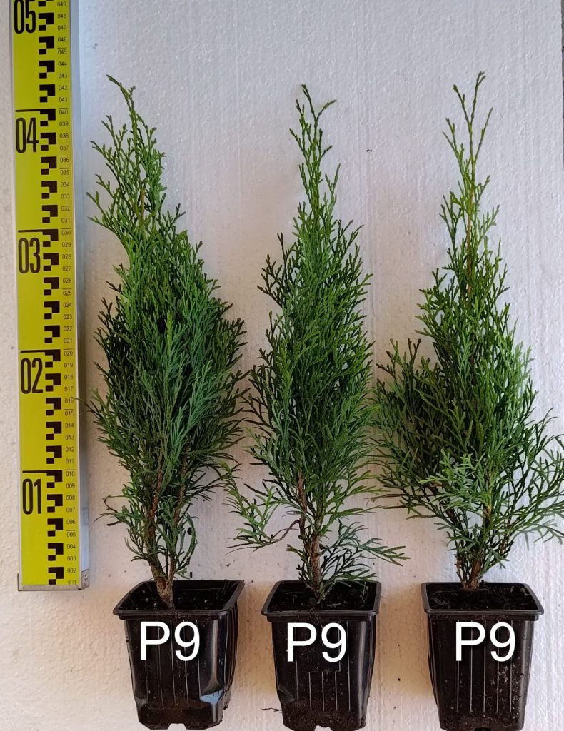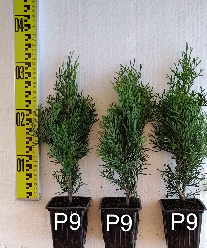 Размер: 4–6 м высотой и 1– 1,8 м шириной. Годовой прирост в высоту 10 см-20см, в ширину 4-6 см. В возрасте 10 лет достигает высоты 2,5м. Макс. диметр кроны: до 1,5 м